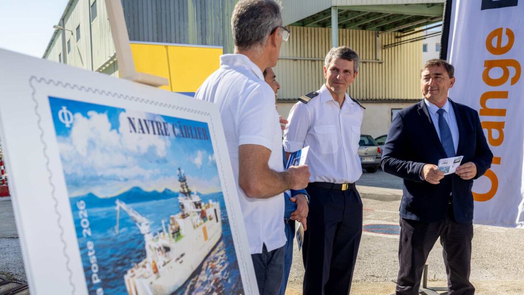 Réalisé par la peintre de la Marine Raphaële Goineau, ce timbre s’accompagne d’une enveloppe et d’un cachet “premier jour”, marquant l’entrée symbolique de ce navire dans le patrimoine postal français. Une distinction rare : il faut remonter à 1960, avec l’Ampère n°3, pour retrouver la trace d’un câblier ainsi représenté.