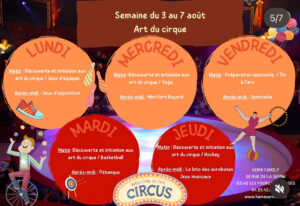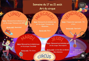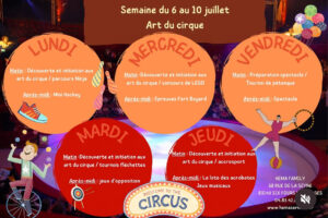 Tout au long de l’été, Hema Family déploie un programme structuré autour de stages thématiques, avec sept semaines d’activités proposées. Chaque session s’organise autour d’un univers immersif, à commencer par le thème du cirque, particulièrement plébiscité par les enfants.