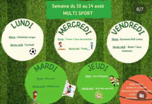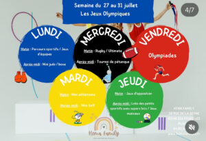 Au fil des jours, les activités s’enchaînent dans une logique à la fois ludique et progressive. Le jeudi après-midi, le “petit loto du sportif” s’impose comme un rituel attendu. Le vendredi, place aux temps forts de fin de semaine : spectacle ou olympiades, où les enfants peuvent valoriser leurs acquis.