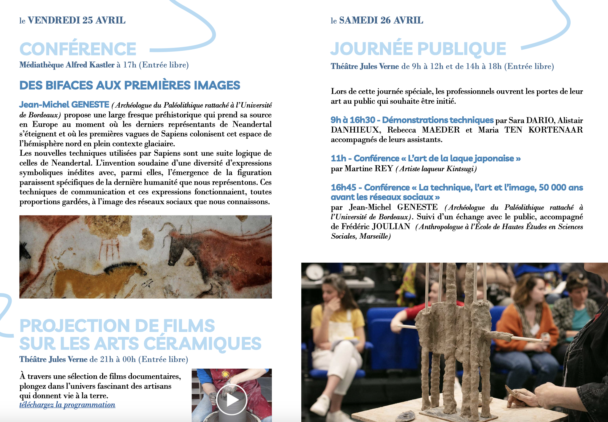 Vendredi 25 avril : Une conférence exceptionnelle de l’archéologue Jean-Michel Geneste sur l’émergence des premières images chez Sapiens, suivie en soirée de projections de films sur les arts céramiques au Théâtre Jules Verne.