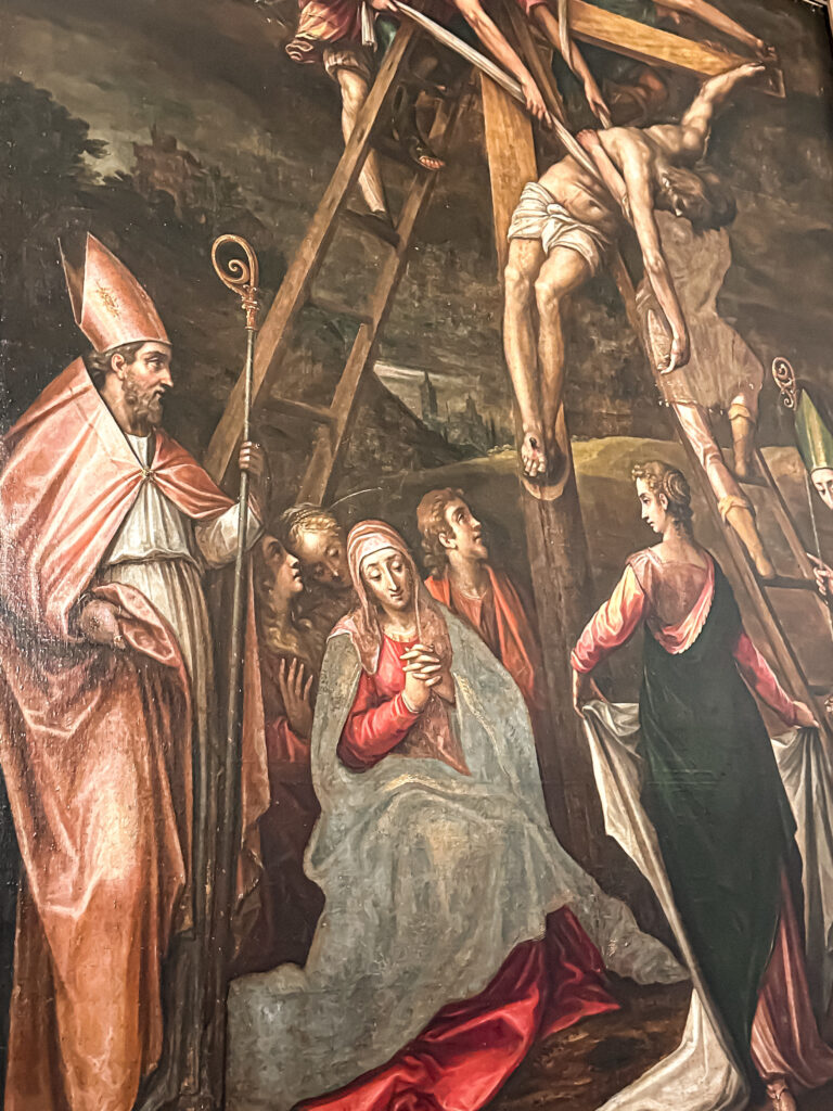 La descente de La Croix est une oeuvre de 1604 et est classé monument historique depuis 1911. La date et la signature du tableau furent mises à jour lors d’un nettoyage en 1970 par un peintre de Six-Fours. Horace Vernet, un grand peintre français et Directeur de l’Académie de France disait en parlant de ce tableau : « Il est malheureux que de pareils trésors soient inconnus et se trouvent ensevelis dans le fond des provinces. » Vous apprécierez.