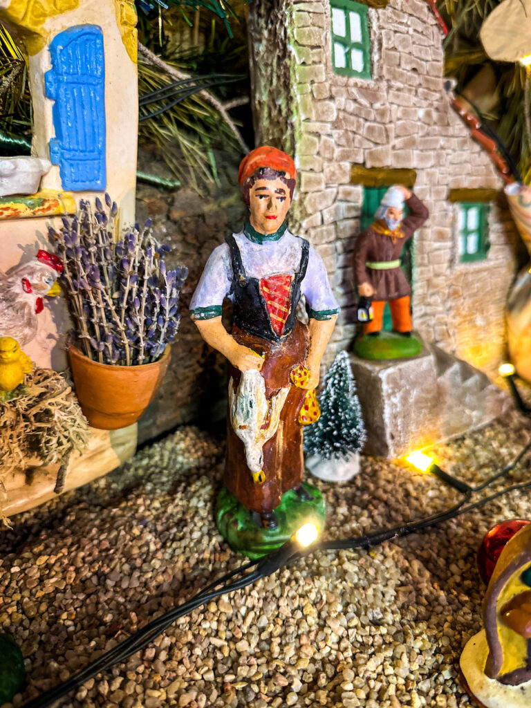 Parmi les figurines, certaines portent plus d’un siècle d’histoire. Issues de la collection de son grand-père, né en 1904, elles ont été peintes à la main par un santonnier d’Aubagne, dont il était le filleul. Chaque Noël, un nouveau santon venait enrichir la collection. Transmis de génération en génération, ces témoins fragiles ont traversé le temps sans perdre leur âme. « Seule la couleur s’est un peu adoucie », confie Nicole. Un patrimoine discret, mais vivant.