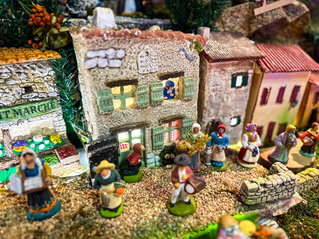 Cette année, décors et plafond ont été posés dès le 15 octobre. Les santons, eux, n’ont nécessité qu’une semaine. Un geste maîtrisé, presque cérémonial. Car pour Nicole, les santons relèvent de l’évidence familiale. « Ma mère faisait une crèche chaque année. Mon grand-père possédait une collection impressionnante. » Certains santons exposés ici dépassent aujourd’hui le siècle d’existence.