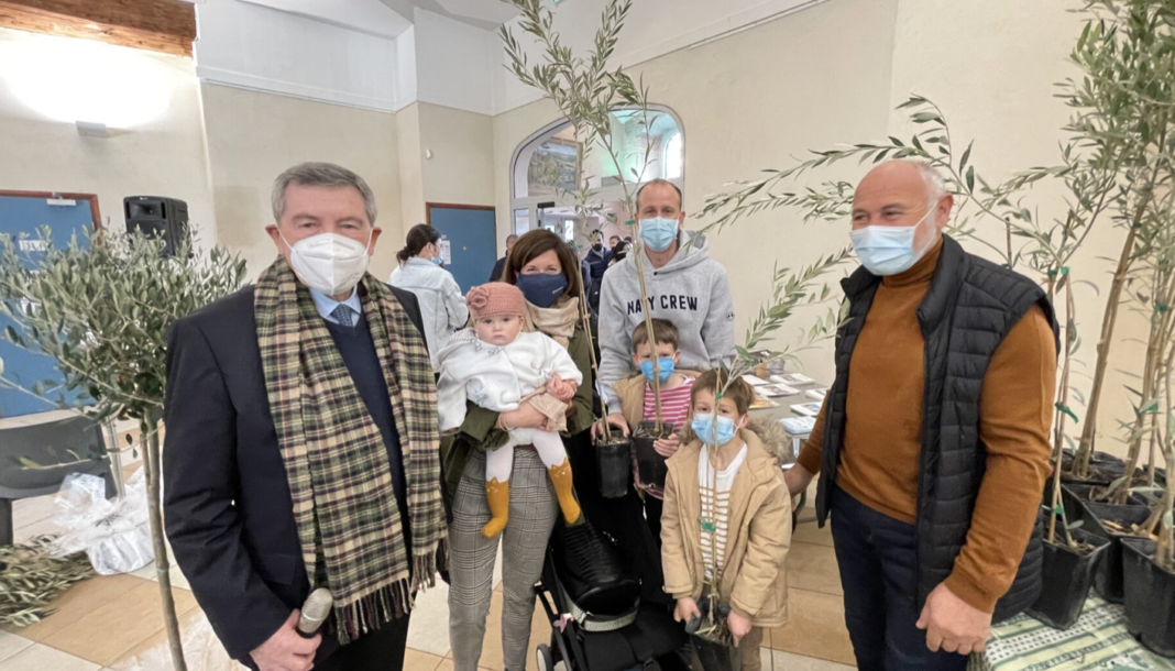 Pour prolonger cette opération, la municipalité a pris la décision, en 2008, d’offrir à chaque nouveau-né un petit olivier. Entouré de leurs parents et de leur grand frère ou grande sœur, chaque bébé est reçu à l’espace Pierre Puget pour une réception officielle.