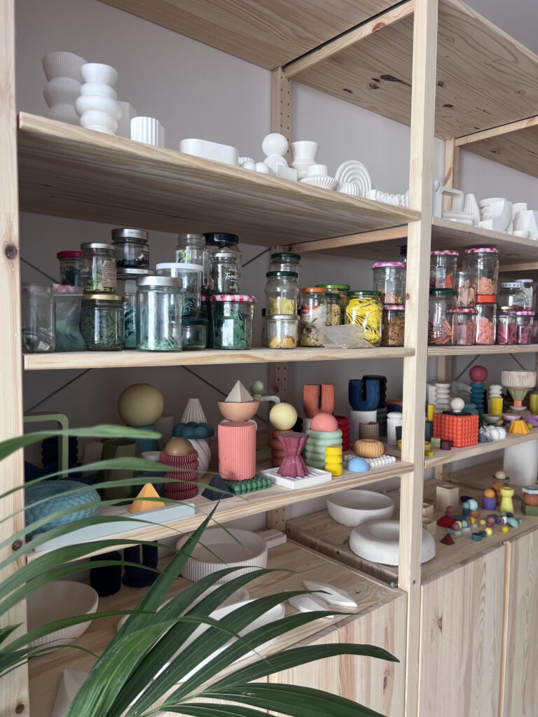 Pour répondre à leurs ambitions, elles cherchent un matériau qu’elles pourraient travailler dans leur atelier, à la fois résistant et créatif. C’est alors qu’elles découvrent le Jesmonite, similaire au béton mais plus léger, qui permet de mieux jouer avec les couleurs. Depuis, elles réalisent des objets de décoration en vente sur leur site et collaborent avec des particuliers comme des architectes.
