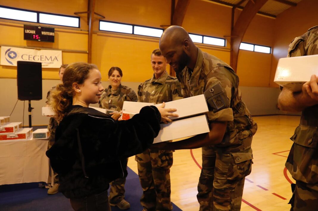 Cette année, 190 colis sont distribués pour les équipages de la Frégate Provence et à un détachement du 519ème régiment du train d’Ollioules représenté par le Capitaine Alexandre Graziana, commandant du 1er escadron de transit maritime. Ces colis sont constitués notamment de foie gras, bon cadeau, confiture de Noël, truffes au chocolat, mitonnade de canard de Fêtes à la crème et aux cèmes, pot de caramel…. ainsi que des dessins et mots des enfants, d’une lettre de Monsieur Le Maire Daniel Alsters.