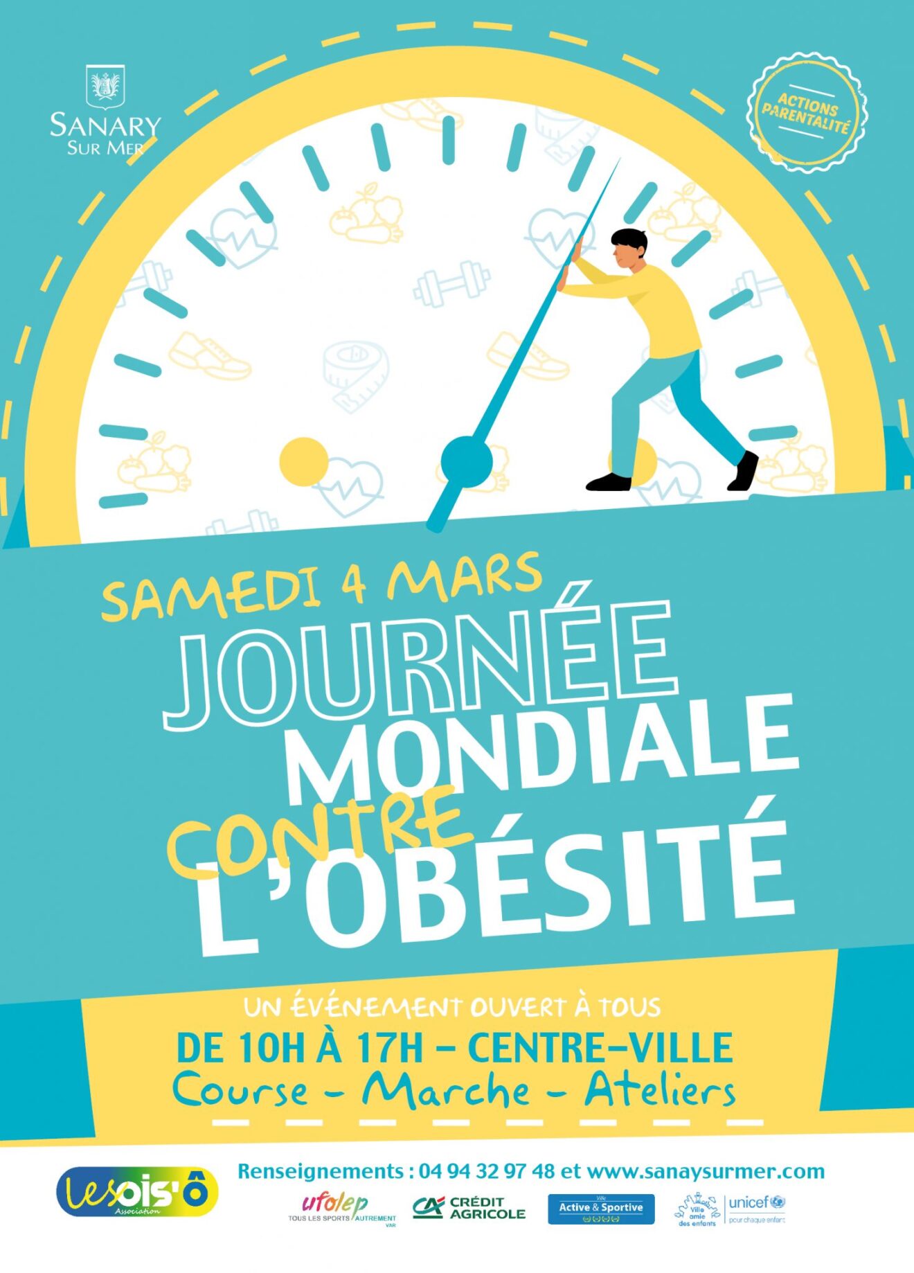 Le samedi 4 mars, c’est la Journée mondiale contre l’obésité. A cette occasion, la Ville de Sanary-sur-Mer se joint à l’association les Ois’ô et propose une journée d’activités sportives et ludiques afin de sensibiliser le plus grand nombre à l’obésité.