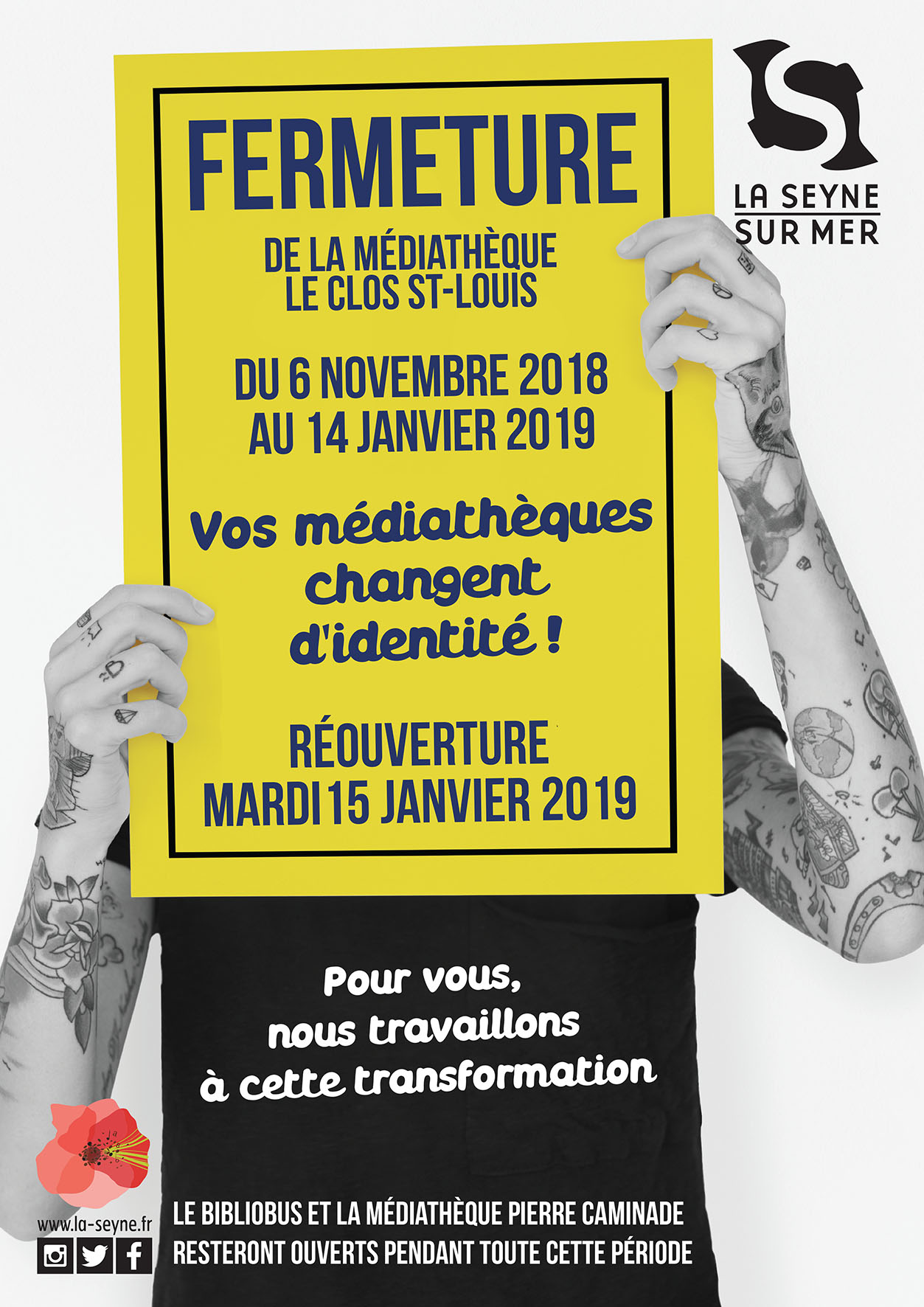 Dans le cadre du réaménagement du réseau des médiathèques de La Seyne-sur-Mer la municipalité a pris des dispositions pour que les lecteurs puissent continuer à emprunter des livres pendant les travaux du 6 novembre 2018 au 15 janvier 2019.